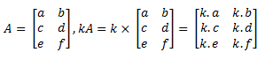Pada operasi perkalian skalar, sebuah matriks dikalikan dengan bilangan skalar. Jika diketahui A merupakan suatu matriks dan K merupakan bilangan real, maka hasil perkalian K dengan matriks A adalah matriks yang diperoleh dengan mengalikan setiap elemen A dengan K.