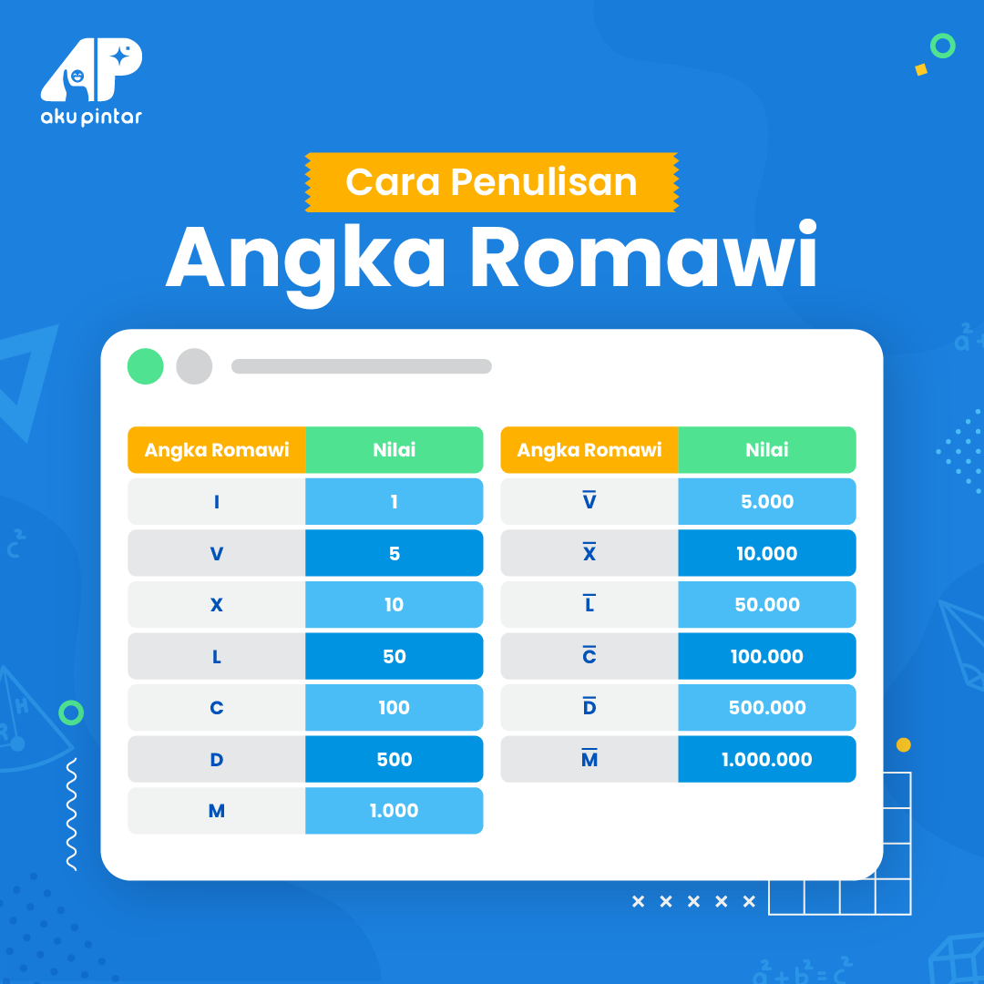 Sampai sini dahulu kita belajar tentang tulisan angka Romawi ya, Sobat Pintar. Kamu bisa belajar tentang lebih banyak tentang apa itu angka Romawi melalui aplikasi Aku Pintar di fitur Belajar Pintar, mata pelajaran Matematika.