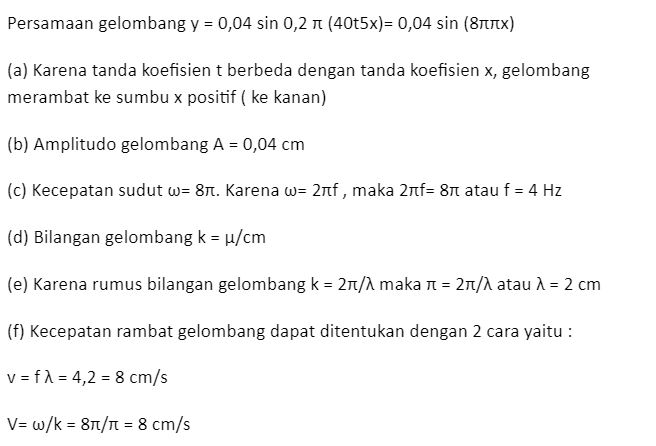 Persamaan gelombang berjalan pada seutas tali dinyatakan oleh x dan y dalam cm dan t dalam sekon.