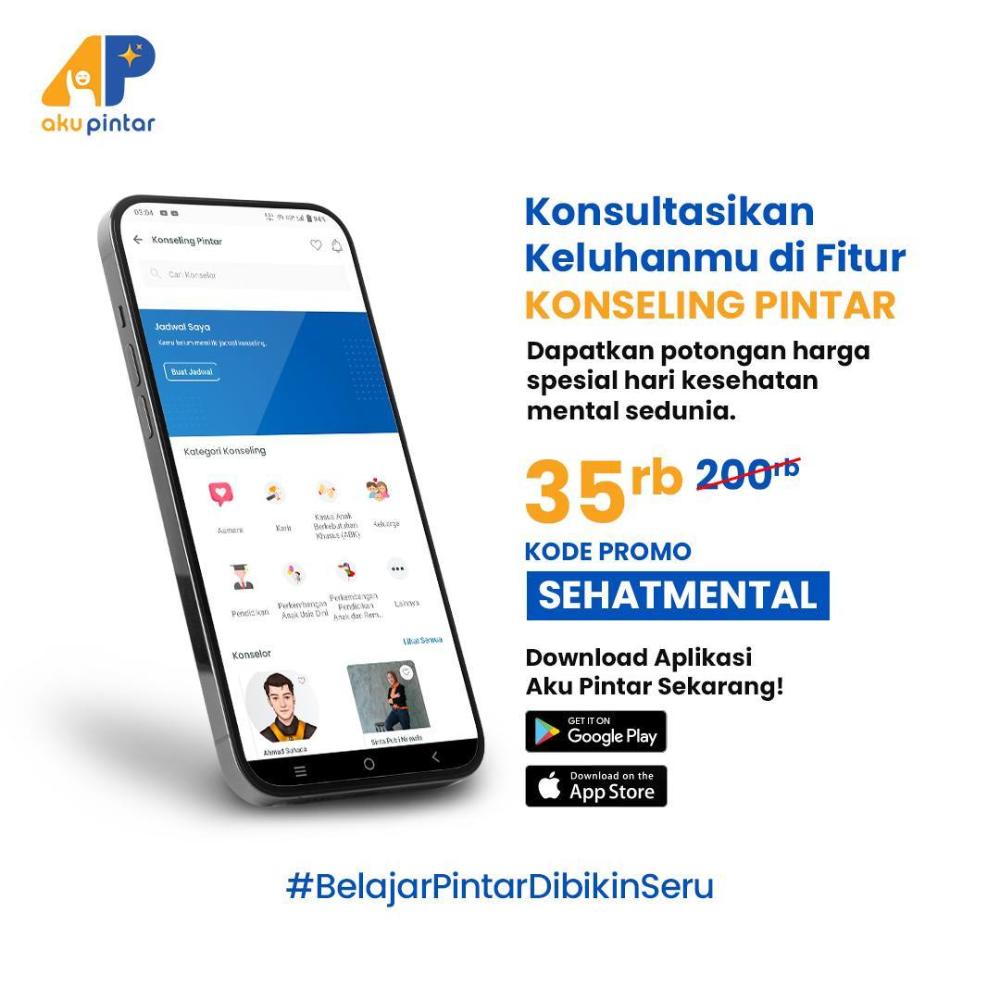 Wah, banyak banget yang bisa kamu obrolin dengan psikolog perihal merawat diri sendiri, Sobat. Kalau mau tahu lebih banyak tentang self care, kamu bisa mengikuti Konseling Pintar. Pas banget nih, saat ini kamu bisa mendapatkan potongan harga yang banyak banget. Dengan kode promo SEHATMENTAL, kamu bisa menghemat biaya konseling dari yang awalnya Rp200.000,00 menjadi Rp35.000,00 saja. Buruan, ya! Promo ini dapat kamu nikmati sampai tanggal 23 Oktober saja.