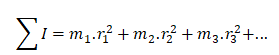 Saat partikel berjumlah banyak dengan massa (m1, m2, m3, ...) dan jarak (r1, r2, r3, ...) yang berbeda-beda terhadap poros, maka momen inersianya adalah jumlah total dari momen inersia masing-masing partikel.