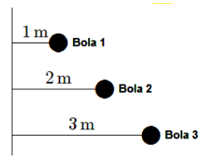 Dari ketiga bola terlihat bahwa memiliki massa yang sama tetapi jarak yang berbeda, dari rumus momen inersia diketahui bahwa: