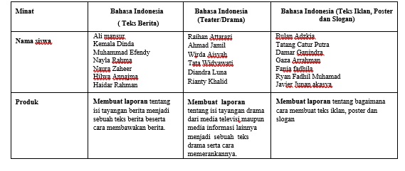 Tabel 2. Pemetaan Kebutuhan Belajar Siswa Berdasarkan Minat