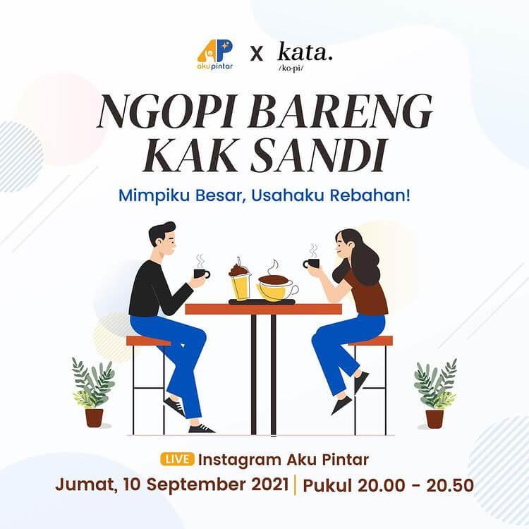 By the way, Ngopi Bareng Kak Sandi, Mimpiku Besar Usahaku Rebahan, bakal live hari Jumat, 10 September 2021, pukul 20.00 WIB – 20.50 WIB. Join yuk Sobat, buat dapat insights baru sekaligus nanya-nanya ke Kak Sandi, psikolog Aku Pintar. "Nongkrong" kayak begini nih, yang bisa membuat kita hidup sehat fisik dan psikis.