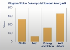Setiap material sampah akan mengalami penguraian. Material sampah dapat berupa sampah organik dan sampah anorganik. Waktu yang diperlukan untuk mengurai sempurna disebut sebagai waktu dekomposisi. Berikut waktu dekomposisi berdasarkan jenis material sampah.