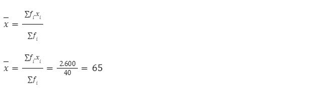 Berdasarkan tabel distribusi frekuensi di atas, dapat kita cari rata-ratanya dengan rumus berikut: