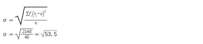 Berdasarkan tabel di atas, simpangan bakunya adalah: