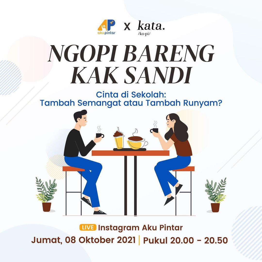 Atau, Sobat Pintar sudah punya gebetan baru? But wait, punya gebetan itu bisa menjadi motivasi sekolah dan membuatmu lebih semangat belajar atau justru sebaliknya? Mumpung Kak Sandi ngobrolin soal Cinta di Sekolah, ikutan Ngopi bareng Kak Sandi di IG Live @akupintar.id, yuk! Seru-seruannya bakal live hari Jumat, 8 Oktober 2021, pukul 20.00 WIB – 20.50 WIB.