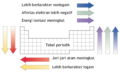 Berdasarkan sifat unsur-unsur, sistem periodik unsur kimia terbagi ke dalam tiga jenis yaitu logam, nonlogam, dan metalloid. Logam memiliki sifat yang cenderung melepaskan elektron dari nonlogam untuk membentuk ion positif. Sedangkan nonlogam cenderung menerima elektron dari logam. Lain halnya dengan unsur metalloid, yang memiliki kedua sifat seperti logam dan nonlogam.