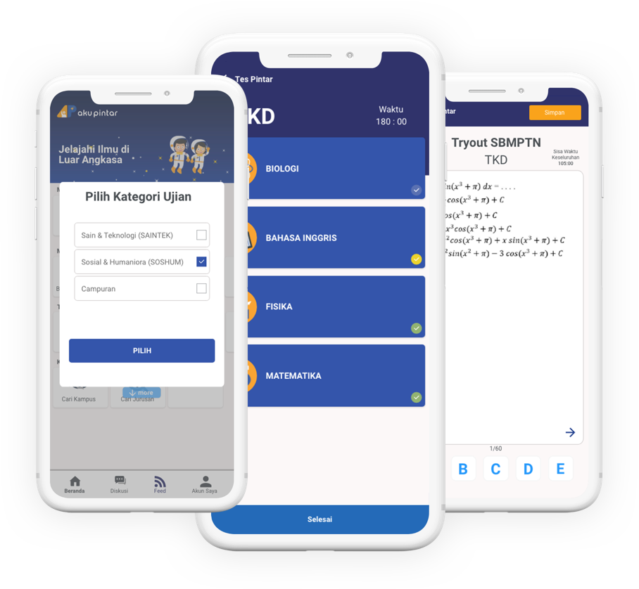 Berbagai tes, tryout, dan simulasi ujian masuk perguruan tinggi siap menemanimu berjuang untuk mendapatkan nilai terbaik!