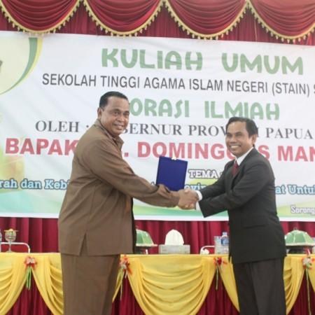 Sementara pembukaan dan orasi ilmiah oleh Pemerintah Propinsi Papua Barat menyampaikan apresiasi yang tinggi kepada STAIN Sorong dan dihadapan mahasiswa baru mengatakan bahwa saat ini Pemerintah Propinsi Papua Barat telah menunjukkan kontribusinya dan perannya dalam meningkatkan pendidikan di Papua Barat. Kemudian dengan kuliah umum ini kami mengharapkan mahasiswa maupun para sarjana untuk tetap mengawal arah dan kebijakan pemerintah sebagai bentuk kita membangun bersama daerah ini terutama pada pembangunan SDM itu sendiri.
