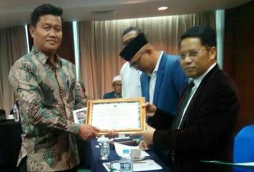 Penyerahan SK dan sertifikat perubahan status yang ditandatangani oleh Direktur Jenderal Pendidikan Islam Kemenag RI Kamaruddin Amin, diterima langsung oleh Rektor IAI Al-Khairat Pamekasan Abdul Muin di Hotel Lumire Jl Senen Raya Jakarta Pusat, DKI Jakarta.