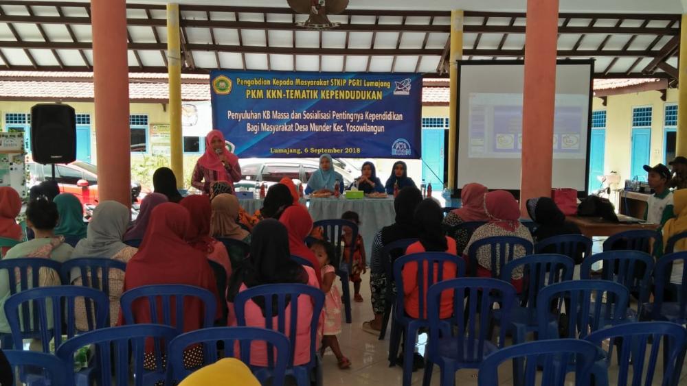 Dalam rangka pengabdian kepada masyarakat dan PKM KKN STKIP PGRI Lumajang di Desa Munder Kecamatan Yosowilangun Kabupaten Lumajang, Mahasiswa STKIP PGRI Lumajang bekerjasama dengan BKKBN menggelar Penyuluhan KB dan Sosialisasi Pentingnya Kependidikan Bagi Masyarakat pada Kamis (6/9/2018).