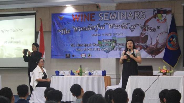 Senat Mahasiswa Sekolah Tinggi Pariwisata (STIPAR) Triatma Jaya dan Yayasan Triatma Surya Jaya menggelar seminar bertajuk The Wonderful World of Wine di Puri Saron, Denpasar, Bali, Senin (10/10/2016).