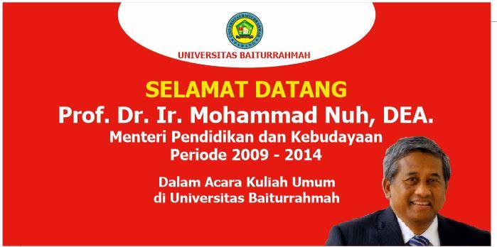 Kuliah Umum Bersama : Prof. Dr. Ir. Mohammad Nuh, DEA. Menteri Pendidikan dan Kebudayaan Periode 2009 – 2014