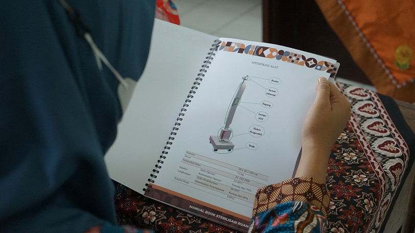 “Alat ini merupakan hasil dari TA mahasiswa, lalu kita perbaiki dari sisi alat dan tampilan agar lebih layak digunakan serta memperbanyak jumlahnya untuk disumbangkan,” jelas Harianto selaku ketua dalam tim PKM tersebut. Tidak hanya sekedar menyerahkan alat, Harianto didampingi beberapa mahasiswa menjelaskan cara kerja penggunaan alat tersebut. “Jadi untuk menggunakan alat ini, pengguna bisa melakukan penjadwalan otomatis melalui aplikasi telegram,” lanjutnya. Sehingga, alat ini bisa bekerja untuk mensterilkan ruangan dengan kendali jarak jauh. Namun begitu, para pengguna juga tetap bisa melakukan sterilisasi secara manual yaitu hanya dengan menghubungkan kabel alat UV Sterilization ke stopkontak yang terhubung dengan listrik.