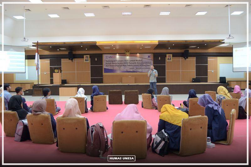 Menjadi salah satu dari 10 perguruan tinggi yang ditunjuk Kemenristekdikti untuk melaksanakan KKN tematik kewirausahaan dengan modul bersama oleh USAID menjadi kebanggan tersendiri bagi Unesa. Menindaklanjuti hal tersebut, Lembaga Penelitian dan Pengabdian kepada Masyarakat (LPPM) Unesa mengadakan “Training of Trainers (ToT) untuk Modul Kuliah Kerja Nyata (KKN) Tematik Kewirausahaan dan Keterampilan Non Teknis untuk Mahasiswa”. Kegiatan yang dijadwalkan akan dilaksanakan selama 2 hari yakni tanggal 12 s.d. 13 Juni 2019 ini dilaksanakan di Auditorium lantai 11 Gedung Rektorat, Kampus Lidah Wetan.