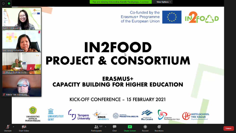 Menindaklanjuti hibah capacity building melalui program Erasmus + CBHE yang diterima oleh Universitas Pembangunan Jaya, pada hari Jumat (15/01) diadakan pertemuan project kick-off secara daring terkait penelitian tentang food waste.
