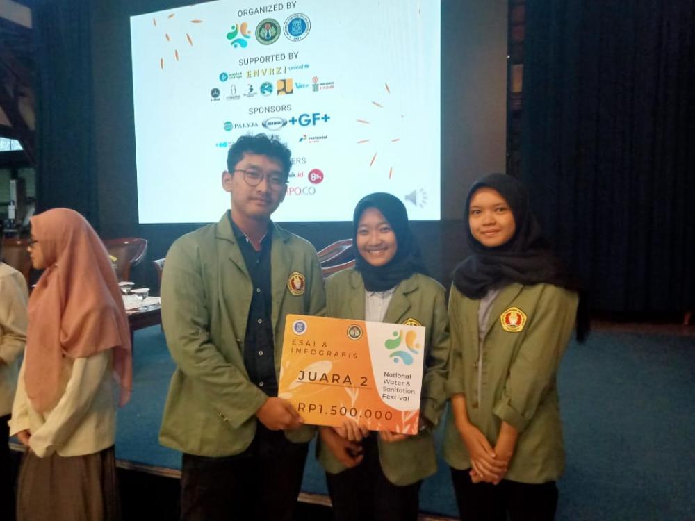 Tiga Mahasiswa Program Studi Teknik Lingkungan Fakultas Teknologi Mineral UPN “Veteran” Yogyakarta (UPNVY) mengukir prestasi pada lomba essai dan infografis tingkat Perguruan Tinggi Negeri seluruh Indonesia. Penghargaan ini diberikan bersamaan acara kegiatan talkshow dan pameran National Water and sanitation Festival yang digelar pada tanggal 15 Februari 2020, di Aula Barat dan lapangan CC Barat Institut Teknologi Bandung (ITB).